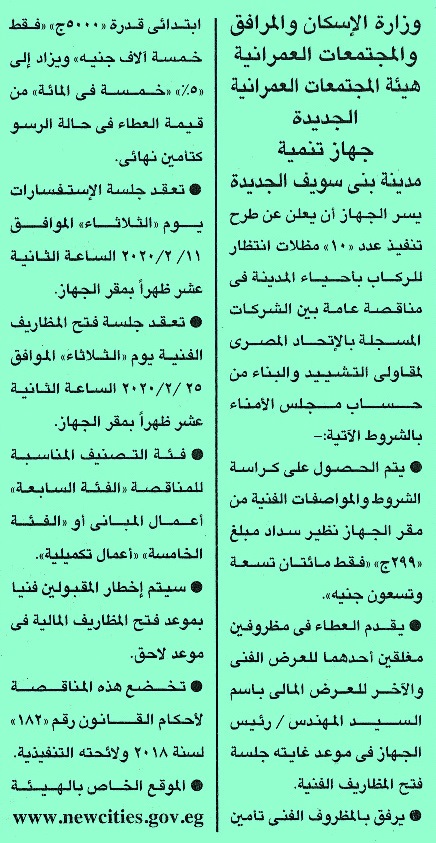 وزارة الاسكان و المرافق و المجتمعات العمرانية هيئة المجتمعات العمرانية الجديدة جهاز تنمية مدينة بنى سويف الجديدة