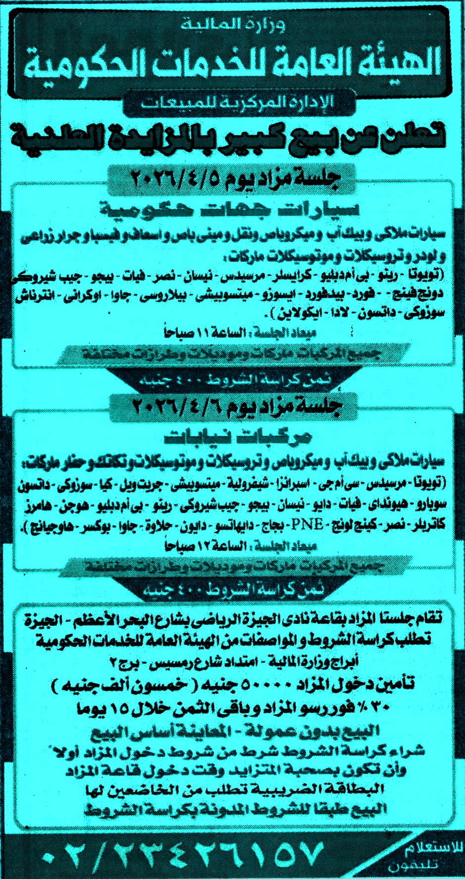 كراسة 6 ابريل مزاد علني لبيع مركبات نيابات |