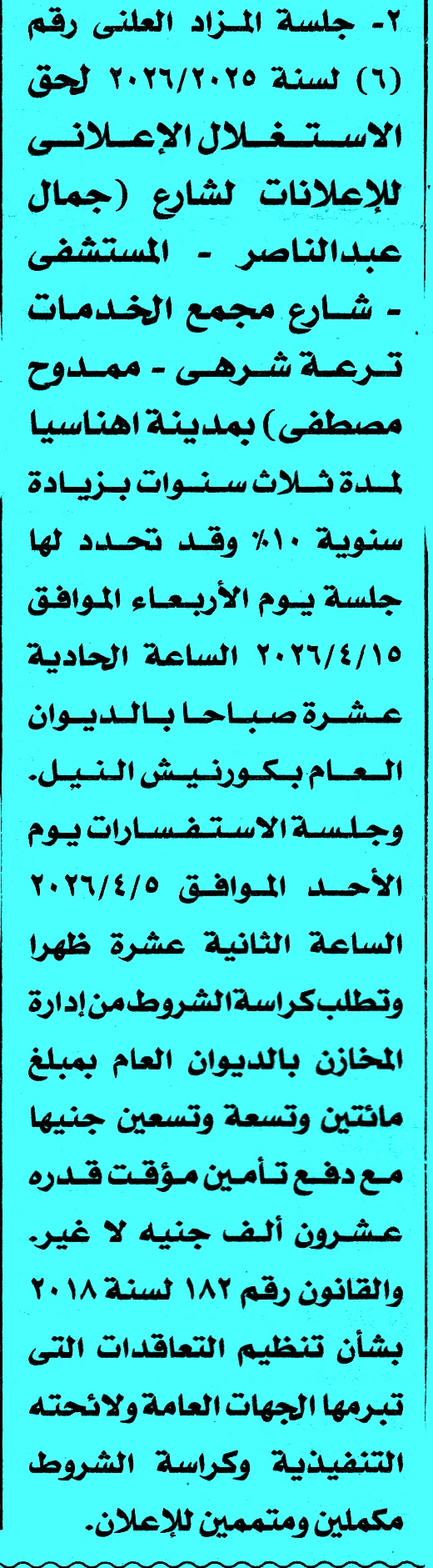 | الهيئه | مزادات متنوعة 18/3/2026 |