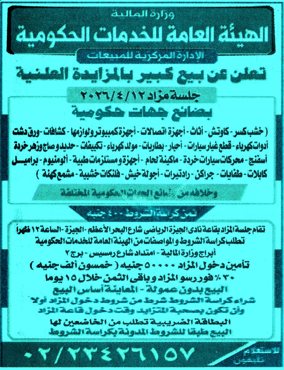 | مزايده عامة علنيه للهيئة العامة للخدمات الحكومية مرفق بالصور | |