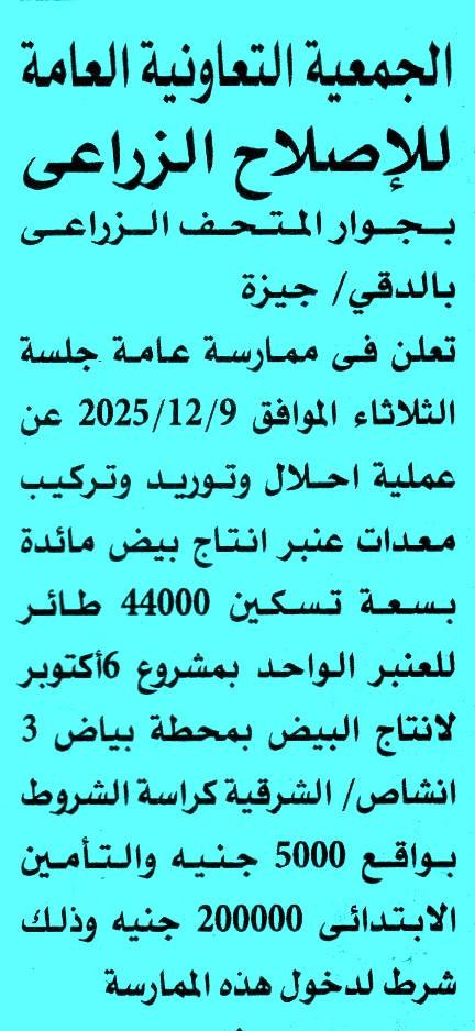 | الهيئه | الجمعية التعاونية العامة للاصلاح الزراعى |