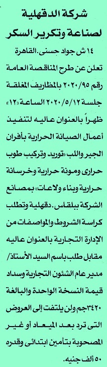 مناقصات شركة الدقهلية لصناعة وتكرير السكر
