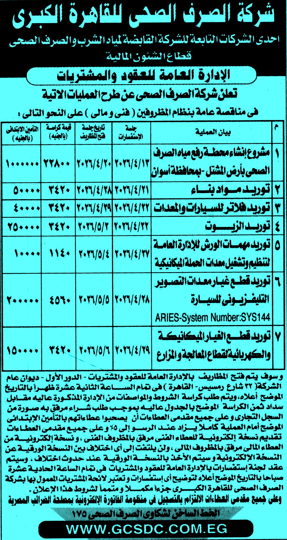 | مناقصات عامة لشركة الصرف الصحى للقاهرة الكبري مرفقة بالصور | |