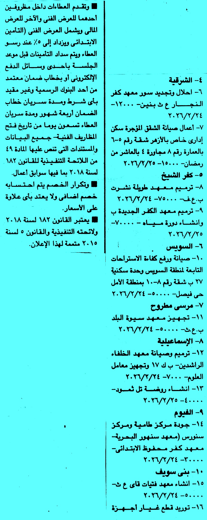 لمتابعة المناقصات أول بأول على صفحتنا على الفيس بوك * الصورة خاصة بموقع مناقصات ايجي ولا يمكن تداولها |