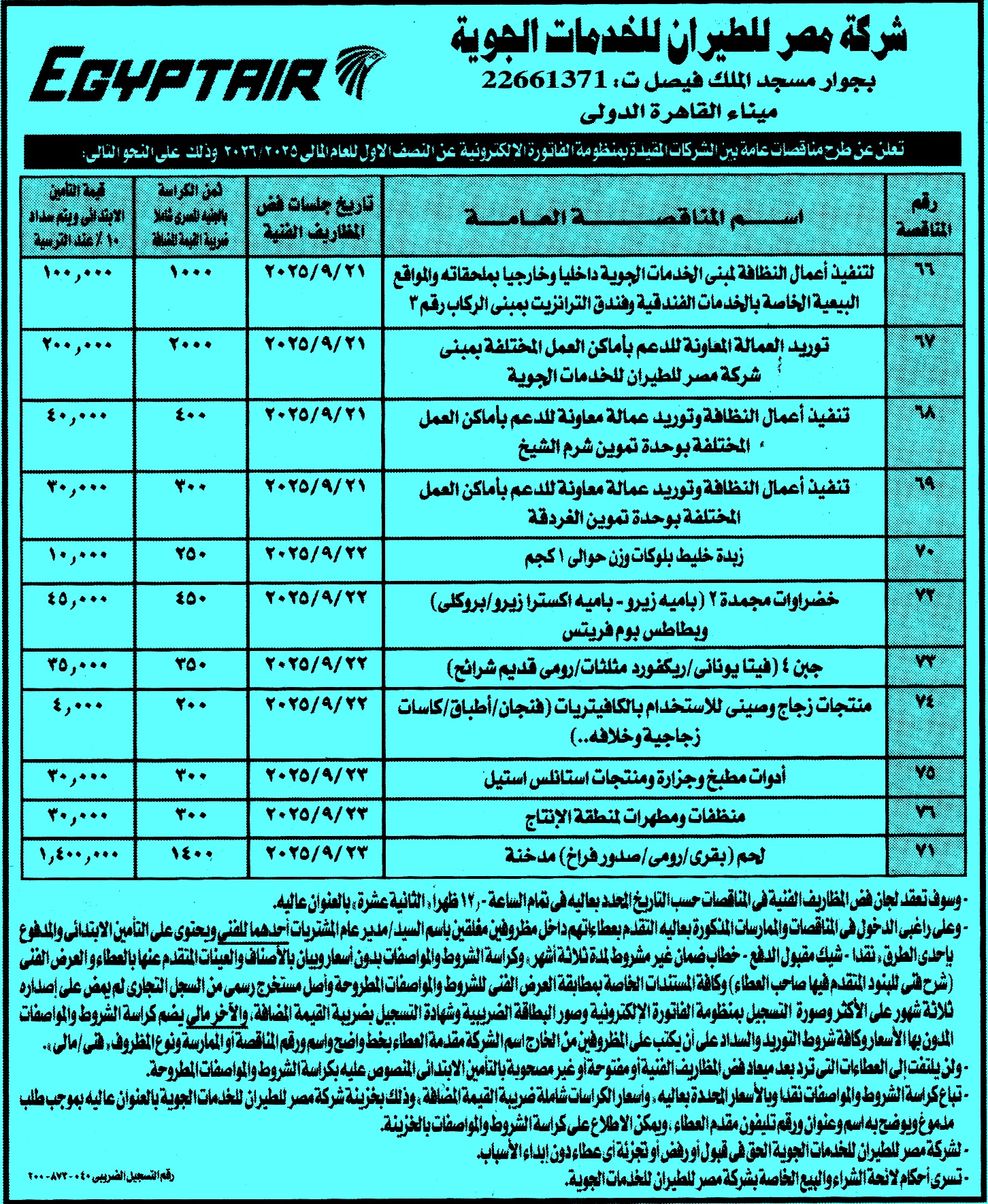 | مناقصات عامة مرفقة بالصور لشركة مصر للطيران للخدمات الجوية | |