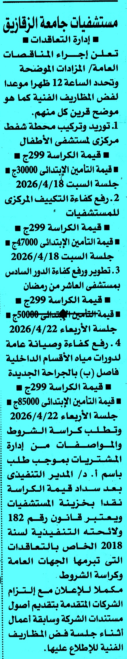 | الهيئه | مستشفيات جامعة الزقازيق - ادارة التعاقدات |
