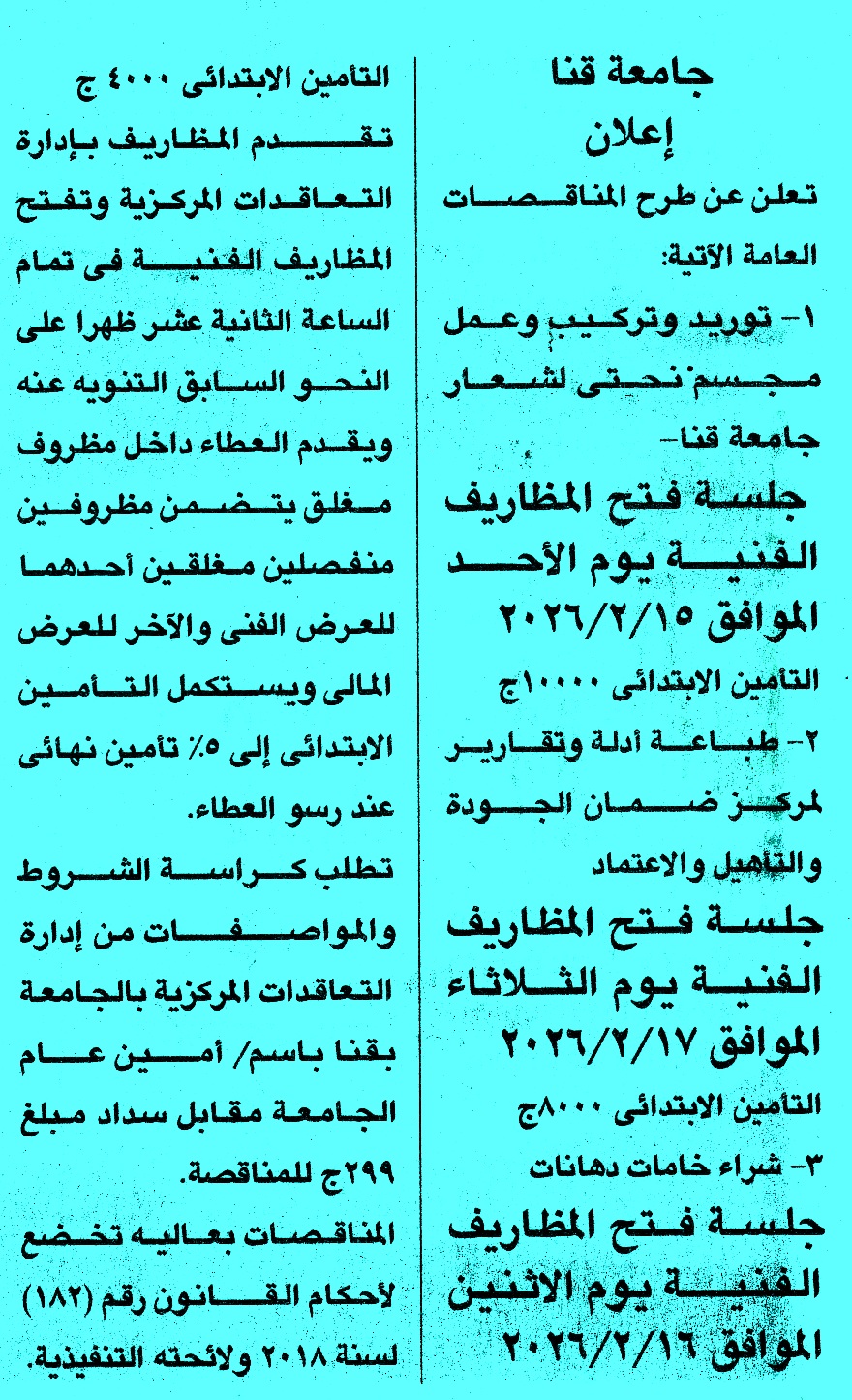 | تاريخ فتح المظاريف | 2026/02/16 |