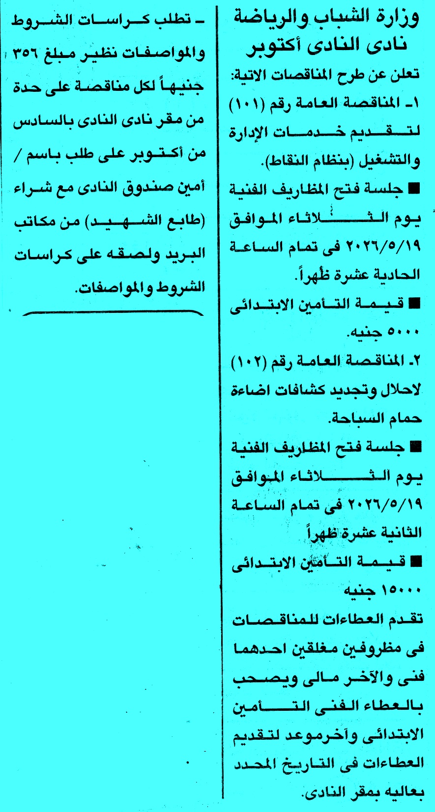 الهيئه وزارة الشباب والرياضة - نادى النادى اكتوبر