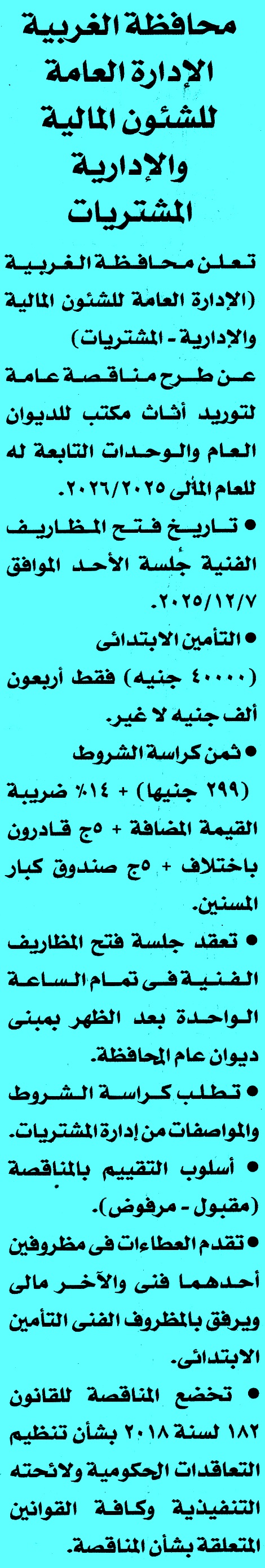 الهيئه محافظة الغربية - الادارة العامة للشئون المالية والادارية - المشتريات