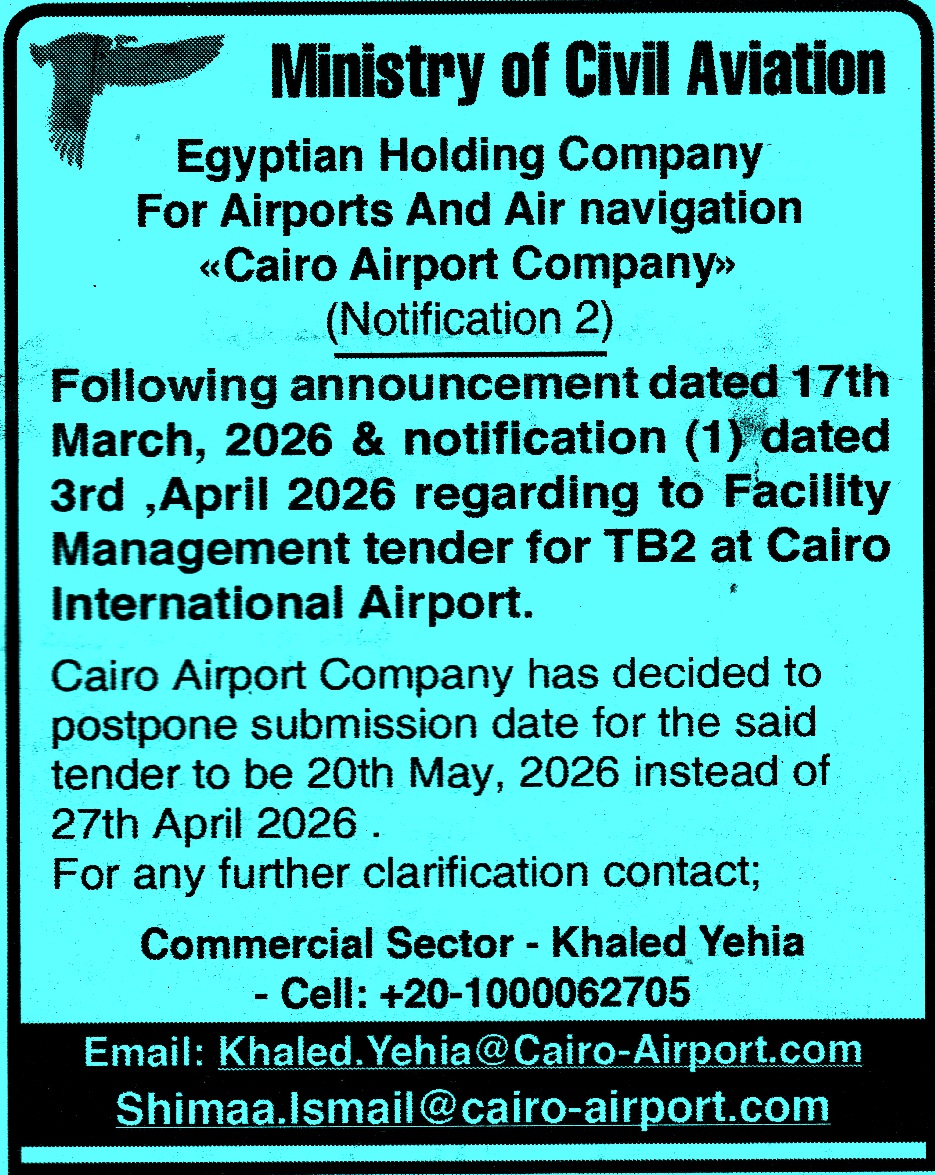 | الهيئه | Ministry of Civil Aviation Egyptian Holding Company For Airports and Air navigation Cairo Airport Company |