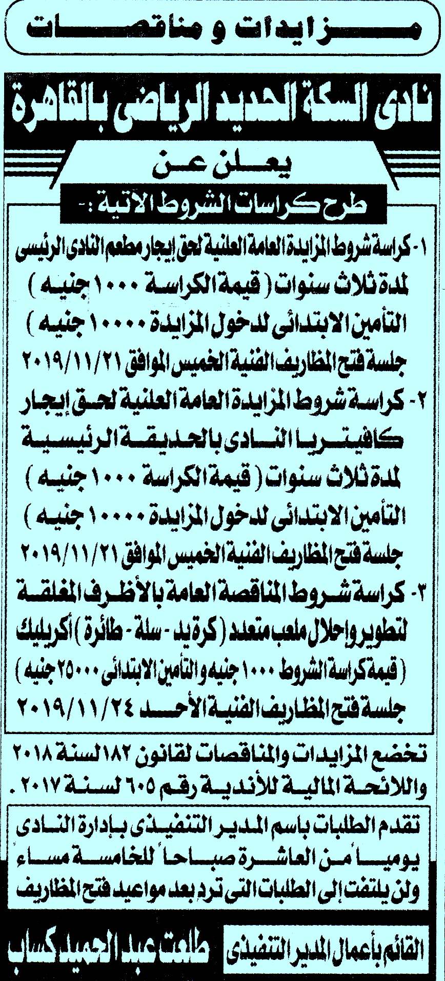 مزادات متنوعة/ ادارة مطاعم وكافيتريات وحدائق/اعمال مدنية متنوعة وهدم وازالة/
