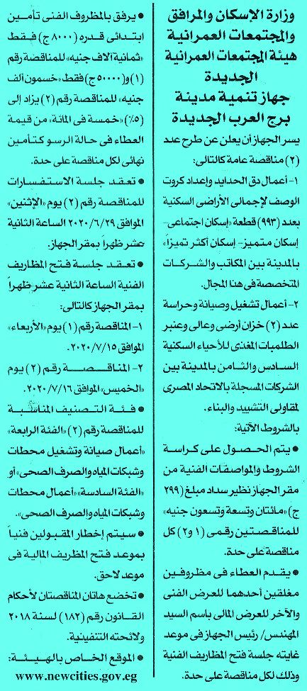 وزارة الاسكان و المرافق و المجتمعات العمرانية هيئة المجتمعات العمرانية الجديدة جهاز تنمية مدينة برج العرب